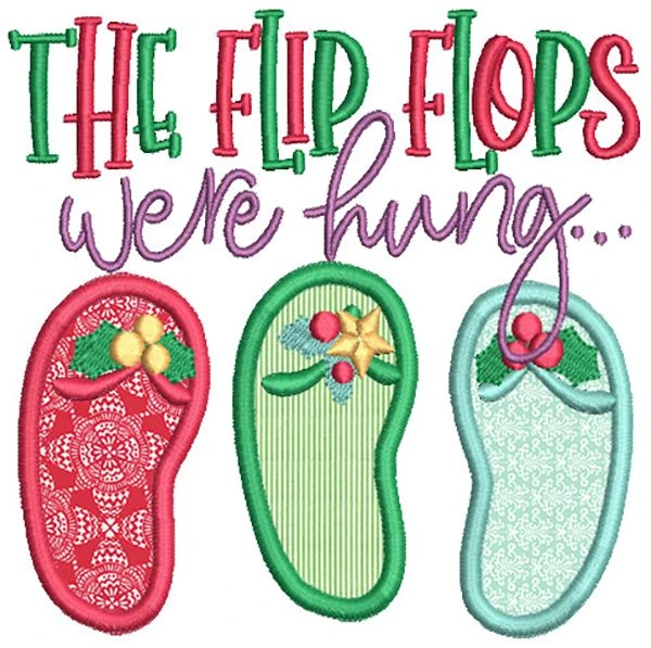 *Please note that the following designs contain applique components: He knows if you’ve been crabby or nice / Leave a light on for Santa / The flip-flops were hung… / Who needs snowflakes when you have seashells / Fa la la la la mingo /