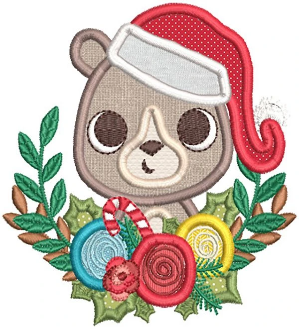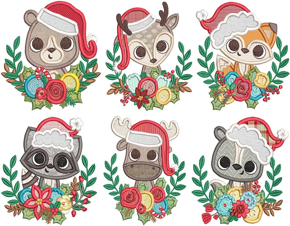 6 precious applique animals in Christmas Laurels! Perfect for baby’s first Christmas projects.