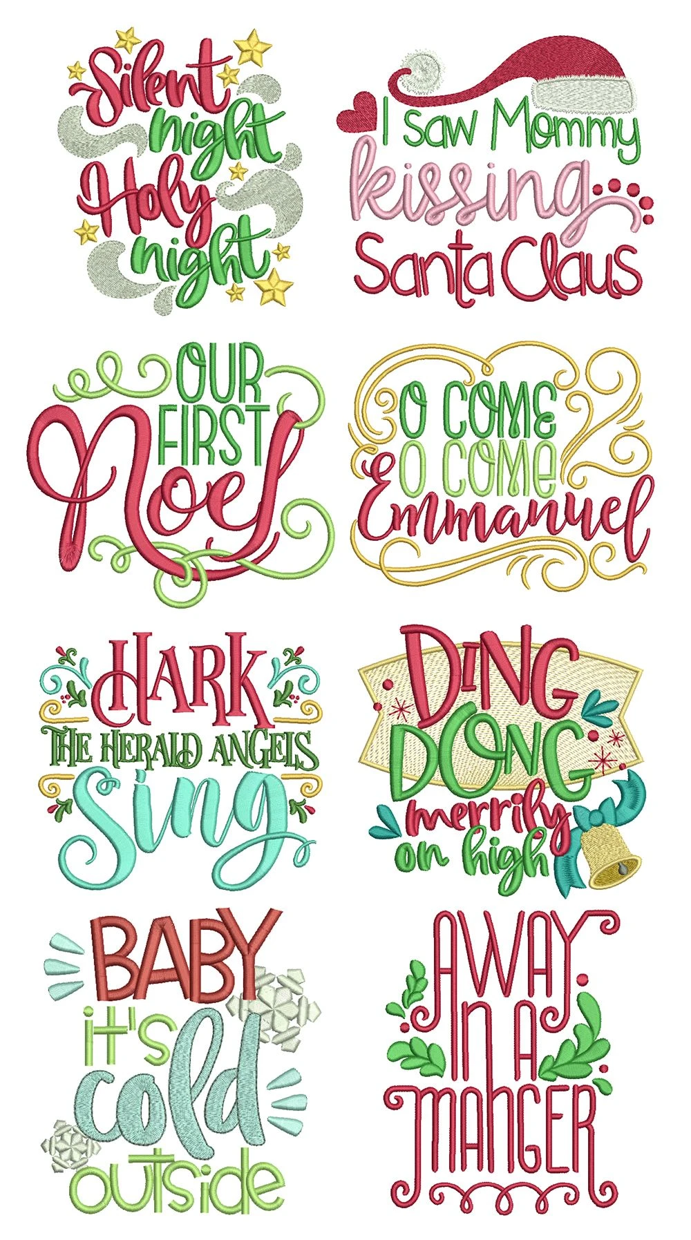 8 more Christmas carol word art phrases. Awesome for home decor, apparel and those last minute hostess gifts!