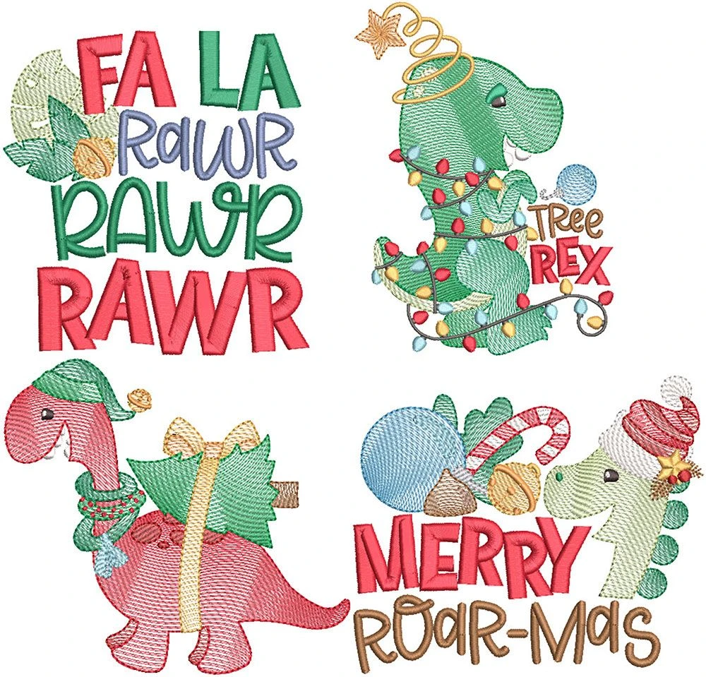 4 sweet and adorable Christmas dino designs in our popular sketched style! These designs feature sketch fill dinosaurs and satin stitch lettering.