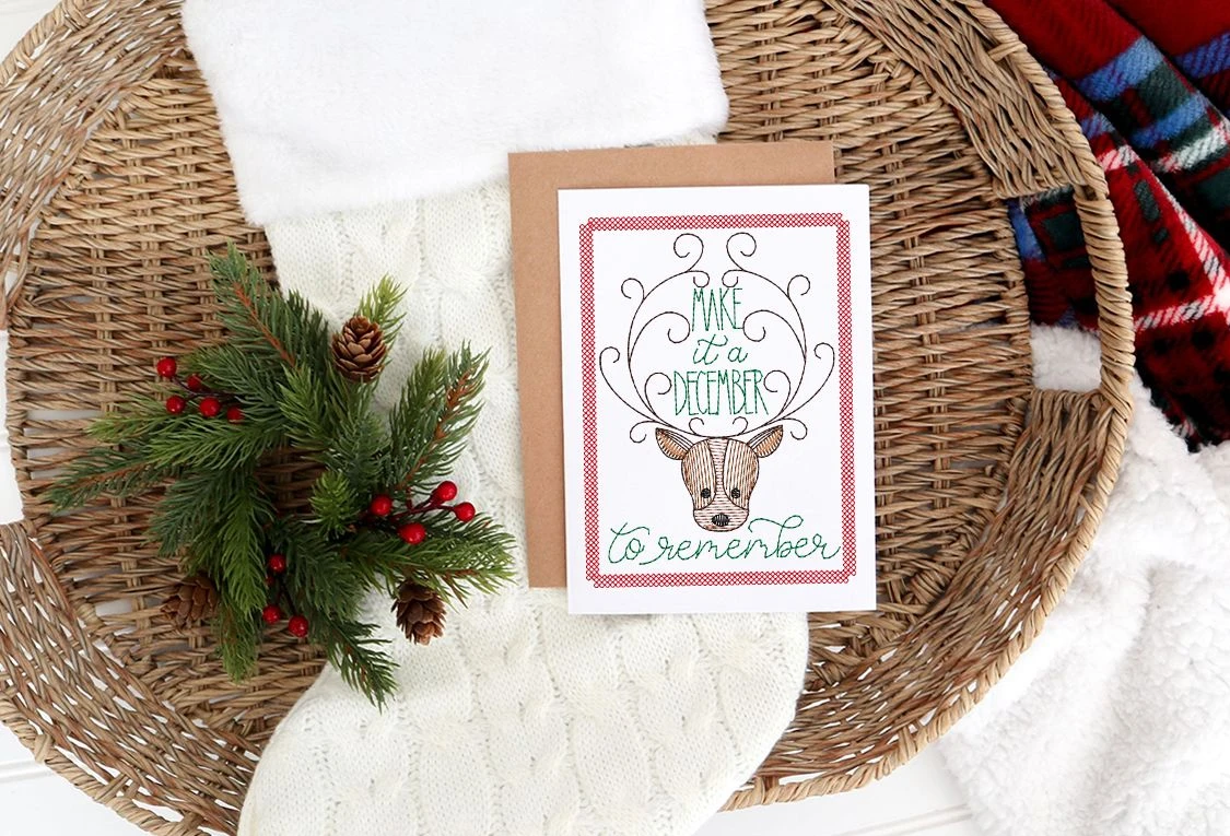 Stitching embroidery onto cardstock is fun and easy! We include a PDF in your download with some tips