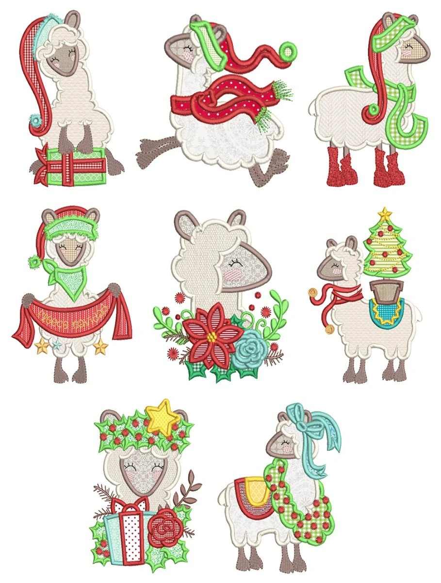 8 sweet and festive Christmas llamas in applique!