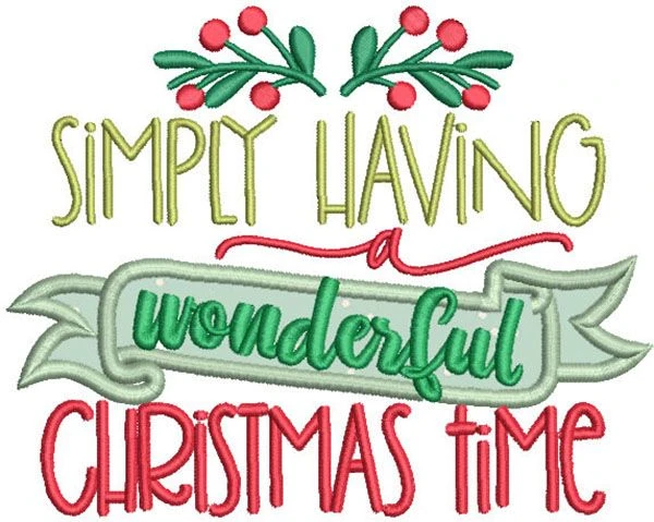 4 more festive Christmas lyric designs! These designs are embroidery only featuring satin stitch lettering with satin, sketch, and fill stitch design elements. “Simply Having a Wonderful Christmas Time” also includes an applique banner in the background.