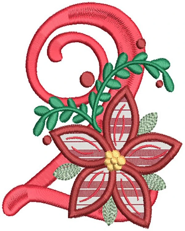 Our Christmas Poinsettia Numbers feature split-satin stitches for the number with applique poinsettias.