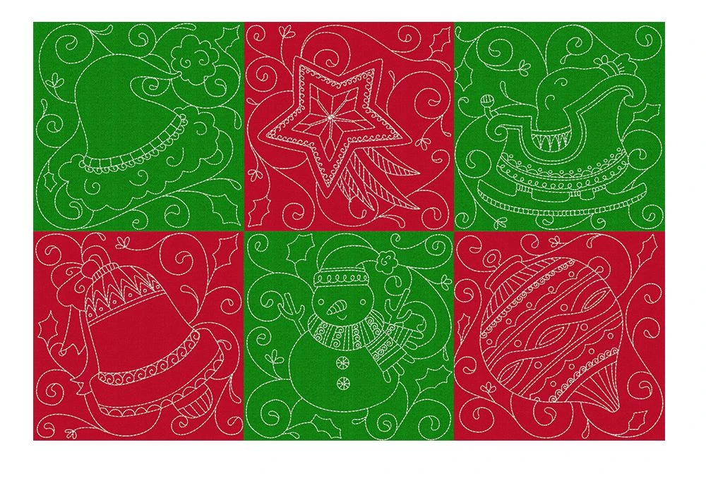 6 Beautiful Christmas themed quilt blocks in single and triple stitch