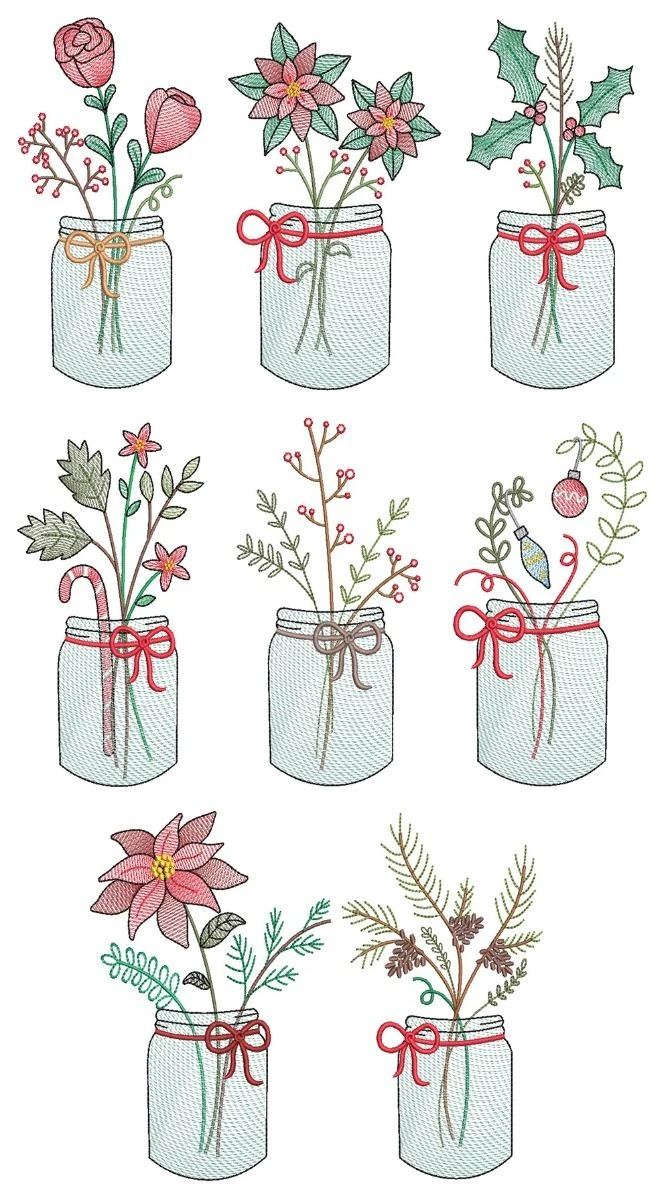 8 beautiful Christmas inspired mason jars in our popular “sketched” style!
