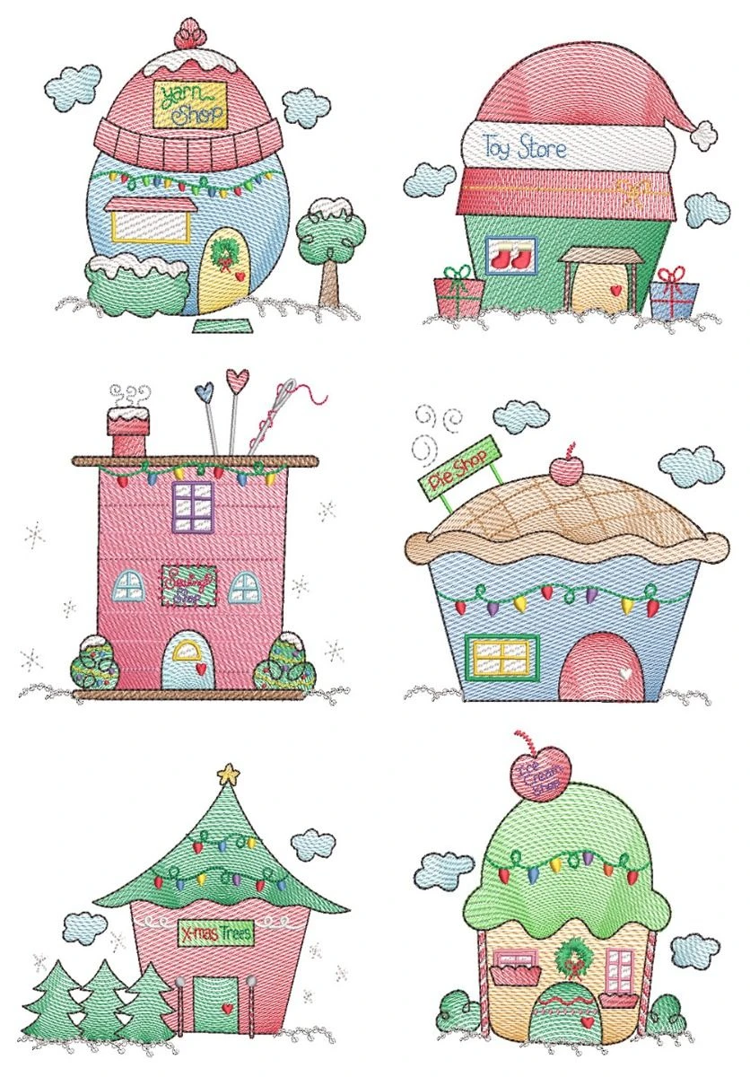 6 more lovely Christmas village designs in our popular “sketch” style! 2 sizes included: 4×4 & 5×7