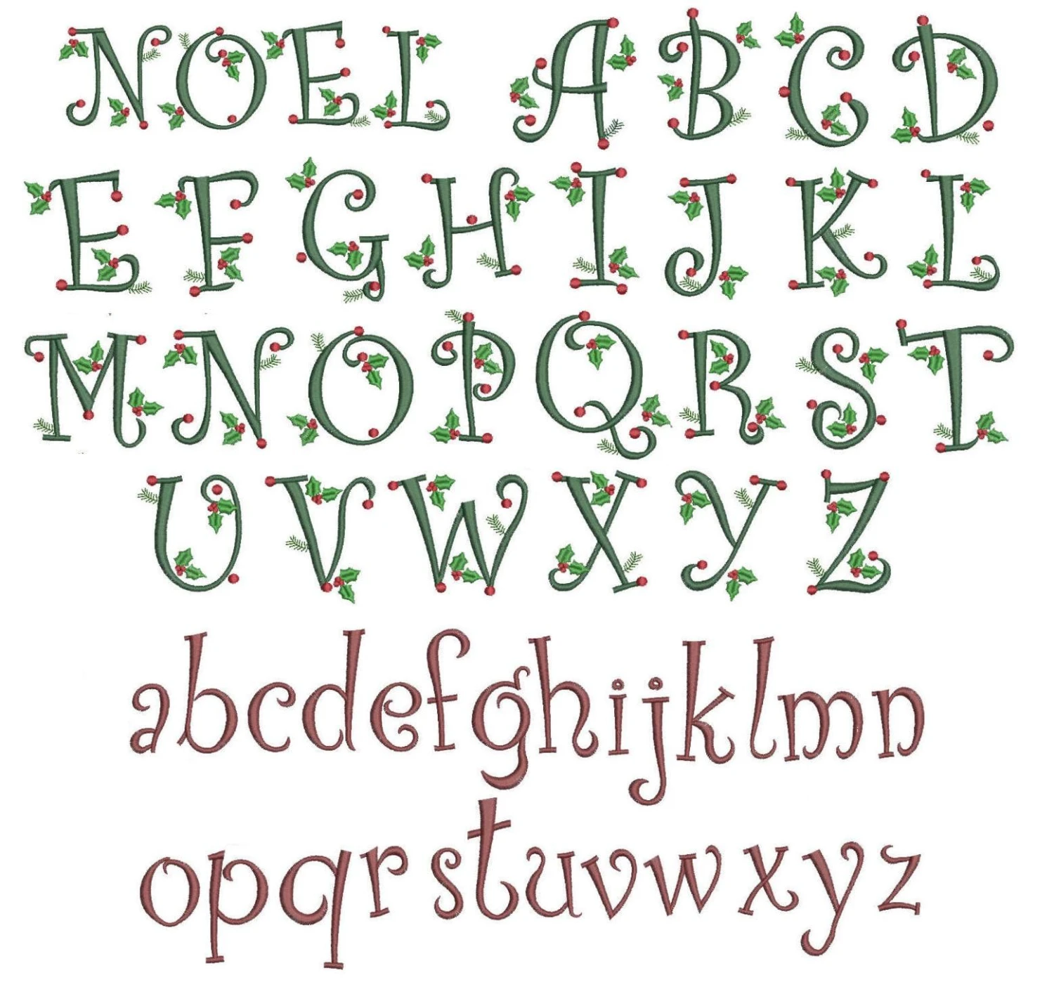 Here is a simple and dainty Christmas alphabet that can be used in a variety of ways. Use as monograms on clothing, towels, bags etc. Use an entire name in caps, or just the first letter in caps with the corresponding lower case letters. Each capital letter is approx. 2″ tall with a corresponding lowercase letter to match. These would be just darling on holiday dresses and jumpers!