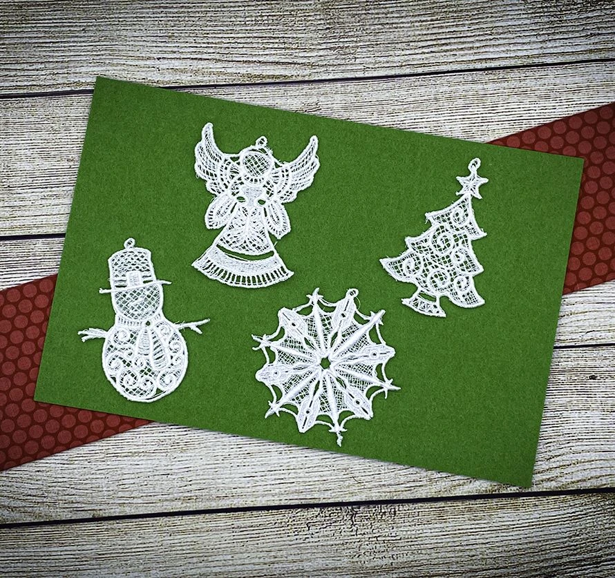 Introducing our first ever free standing lace designs! You will receive 4 different Christmas designs in three sizes each.