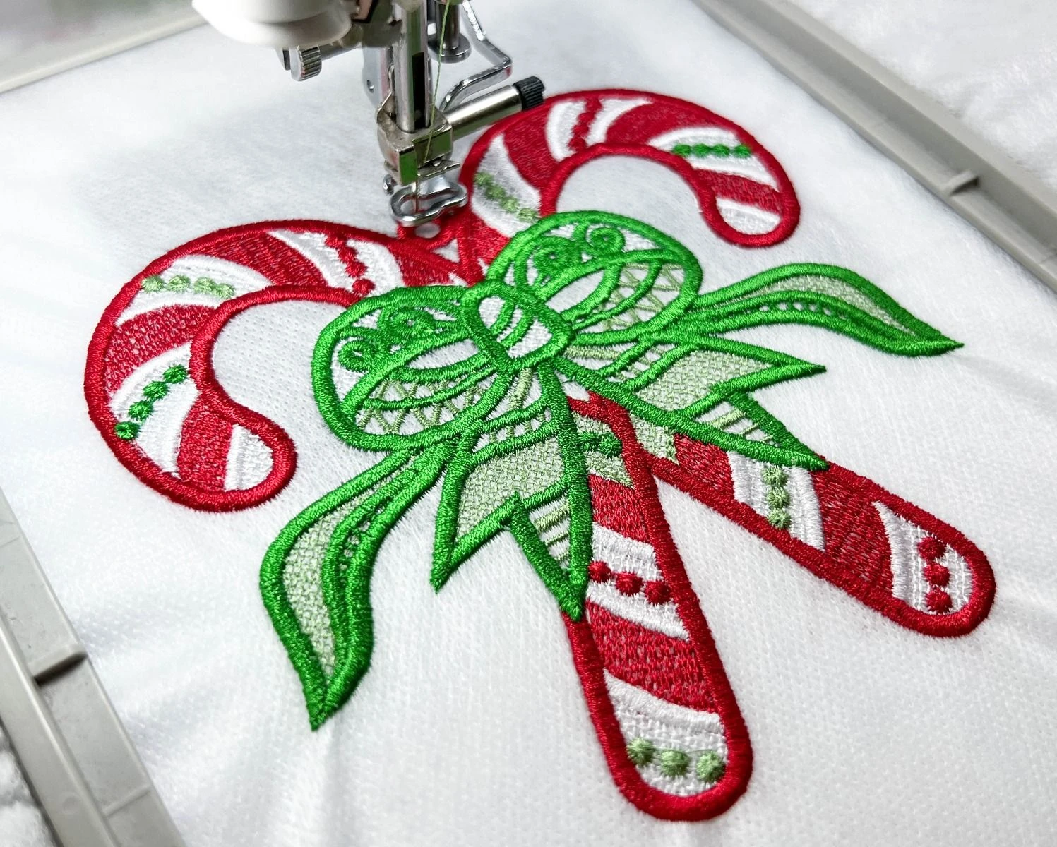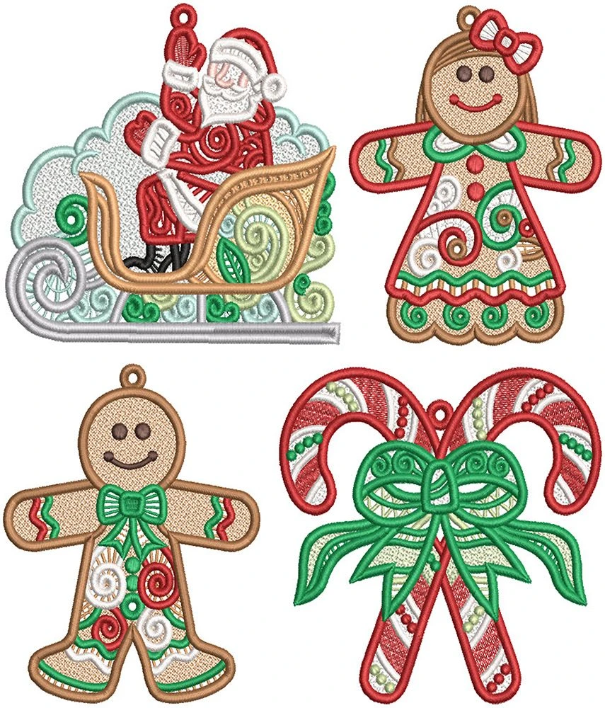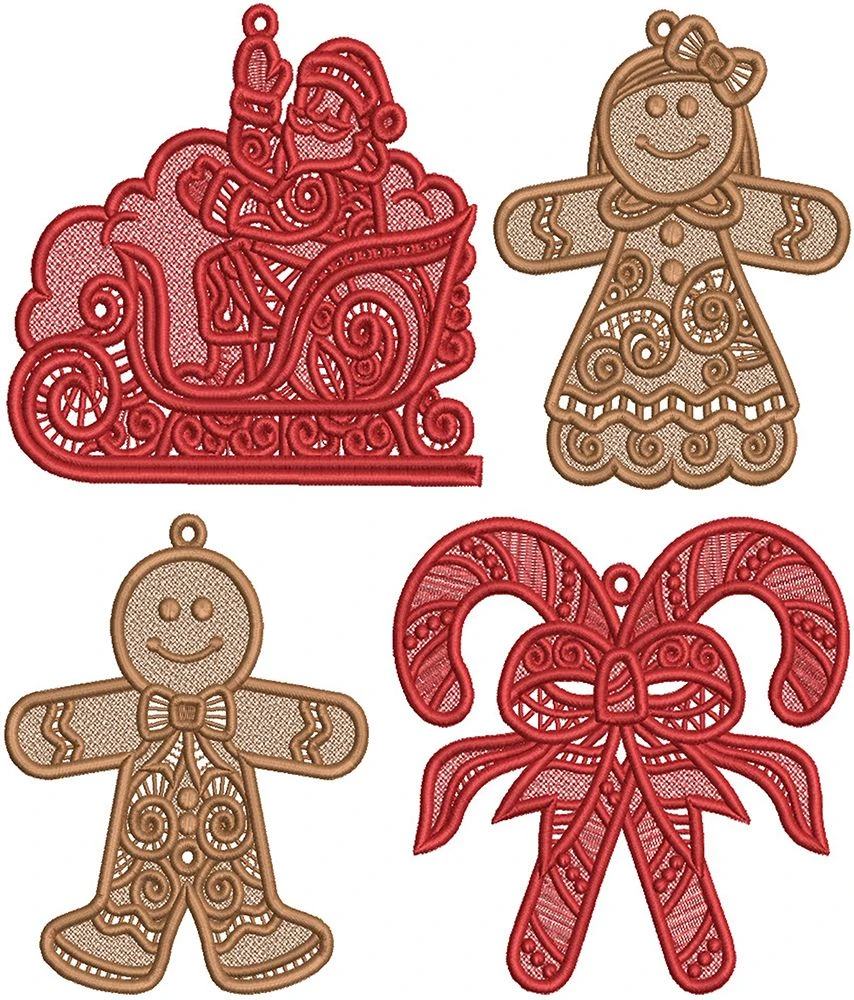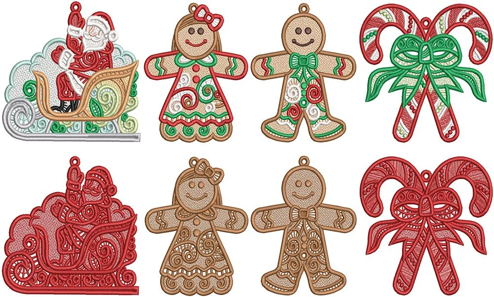 4 elegant Christmas-themed free standing lace designs! Includes option for single or multiple thread colors.