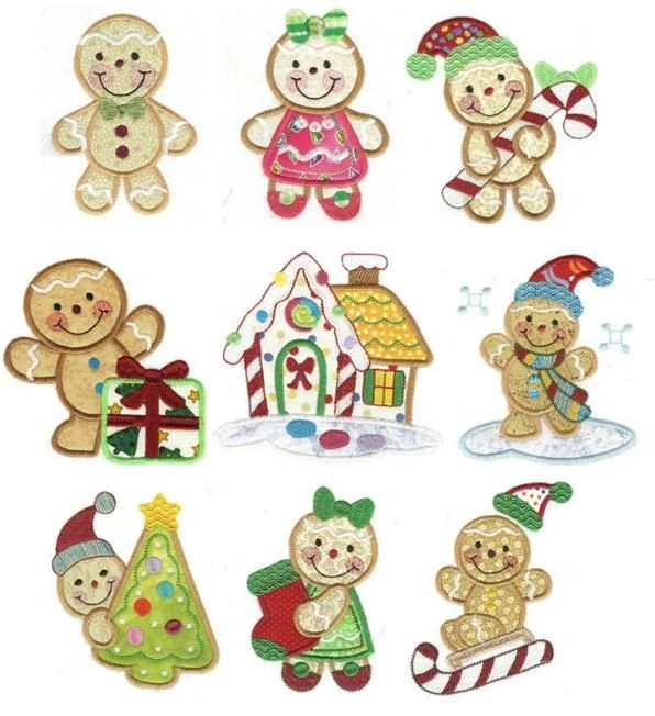 9 super sweet gingerbread designs in applique coming in two sizes each. Sweet and yummy…you are sure to sew these cuties over and over this holiday season!