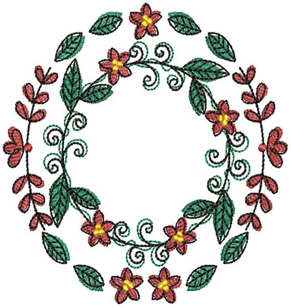 These designs feature a combination of low density fill, satin stitch and bean stitch elements. The outlines are intentionally offset from the fills as part of the stylistic artwork, as pictured.